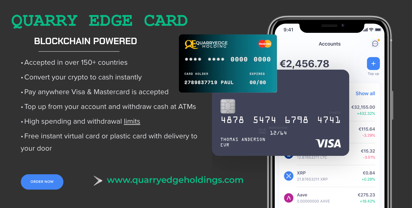 Using the Quarry Edge Holding Card is like using any other card. All you have to do is swipe your card and the payment amount is deducted from the available balance of your Instant Quarry Edge Holding Crypto Credit balance. No hassle and no selling your crypto.